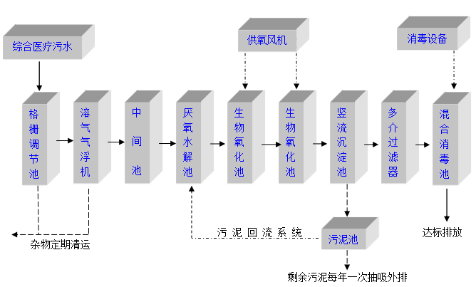 醫(yī)療污水來源及成分復雜,含有病原性微生物、有毒、有害的物理化學污染物和放射性污染等,具有空間污染、急性傳染和潛伏性傳染等特征,不經(jīng)有效處理會成為一條疫病擴散的重要途徑和嚴重污染環(huán)境。